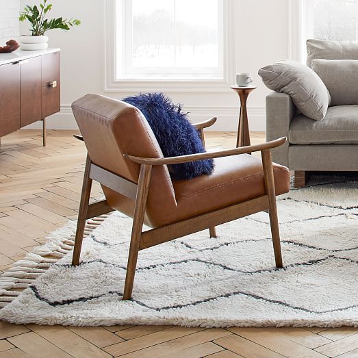 West Elm Mid Century Leather Show Wood Chair Arm Chair 3d Models